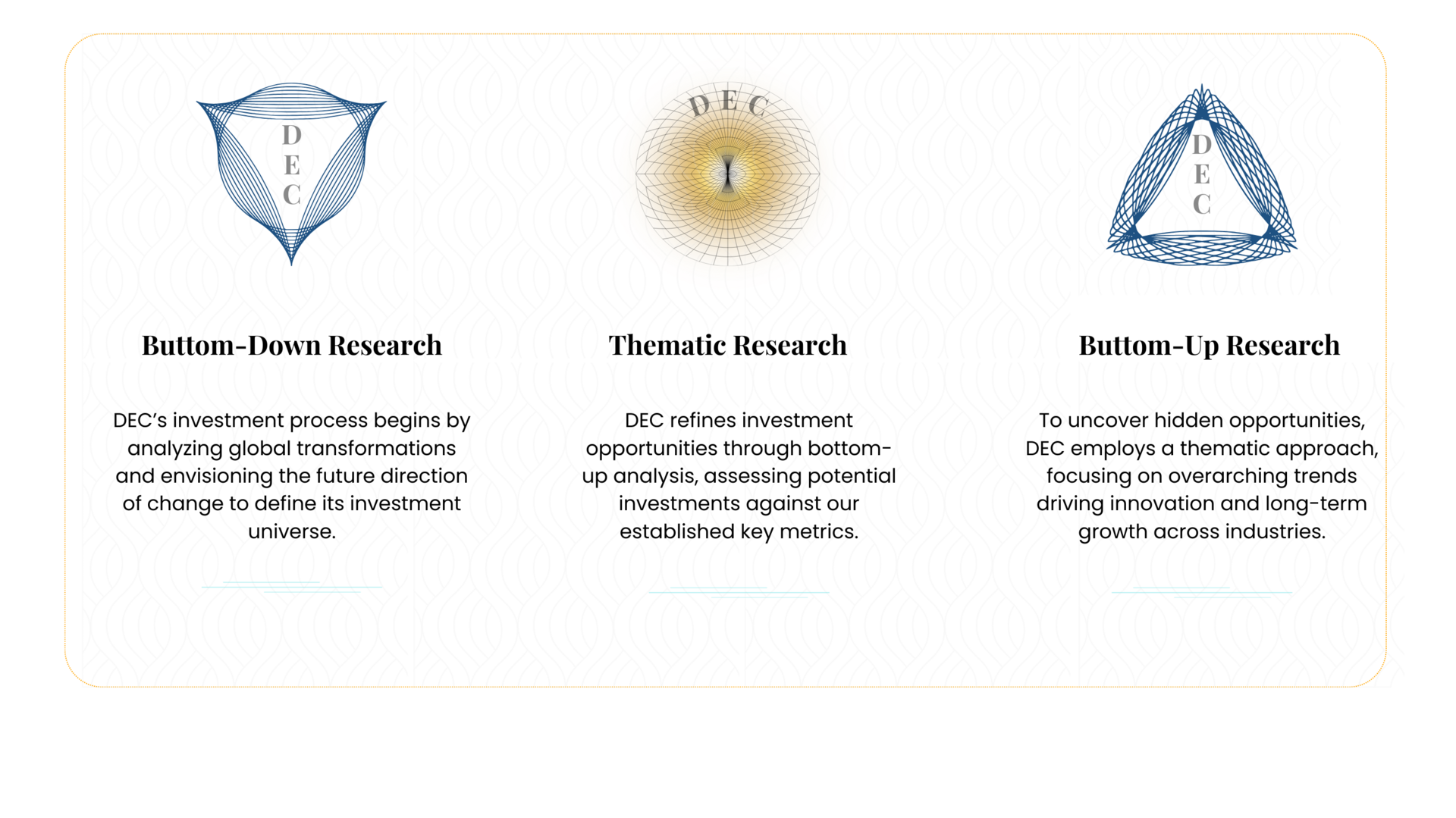 Progressive and dynamic, our investment philosophy is designed to thrive in all economic conditions. DEC ETFs are built to ride the waves of economic shifts, adapting to market changes while staying firmly grounded in their core themes. This dynamic approach, combined with rigorous research and state-of-the-art analytics, enables us to deliver funds that consistently outperform benchmarks, offering investors confidence in their pursuit of long-term growth.